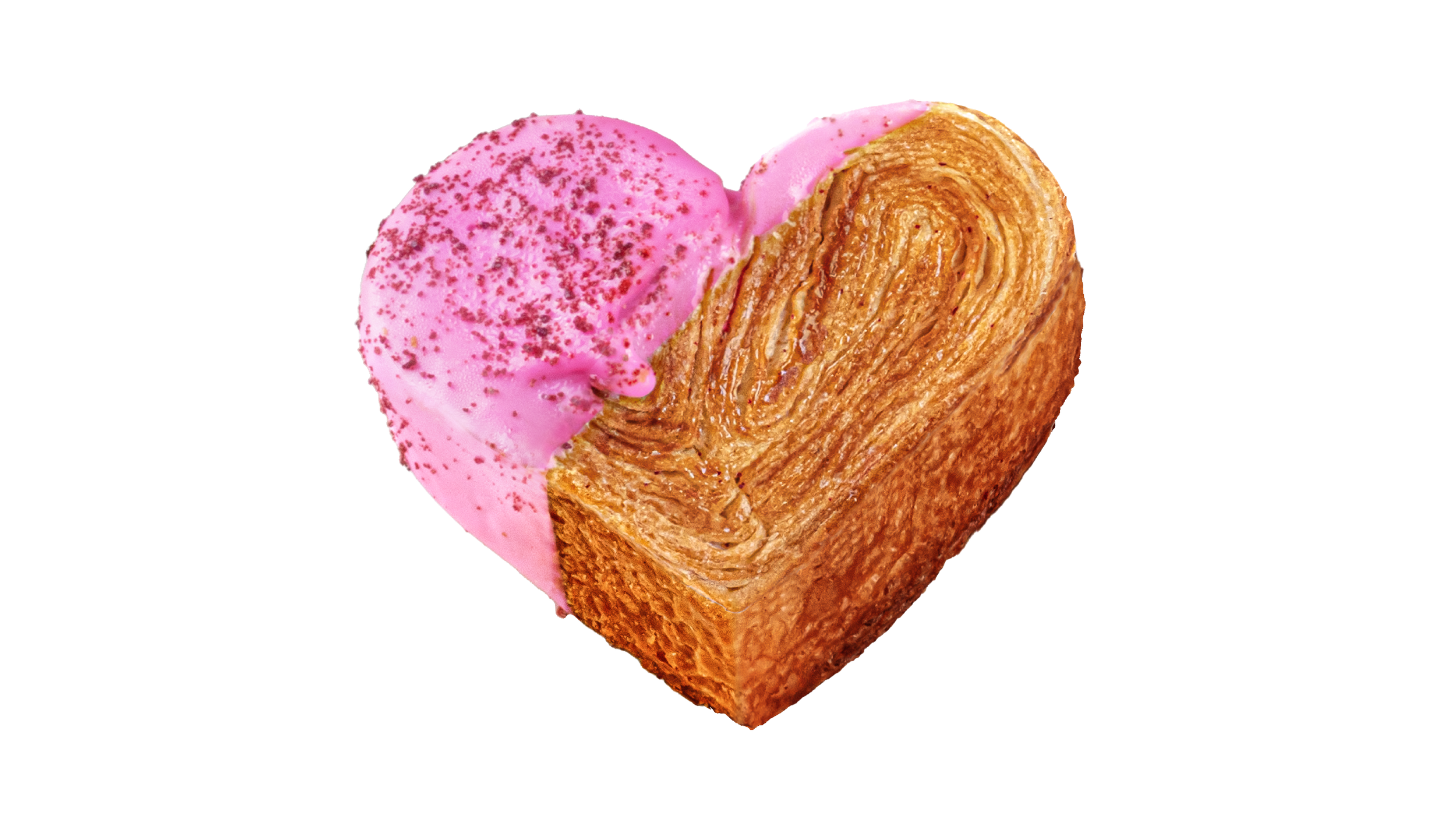 Croissant Bomboloni berbentuk hati berisi krim strawberry dan frosting strawberry