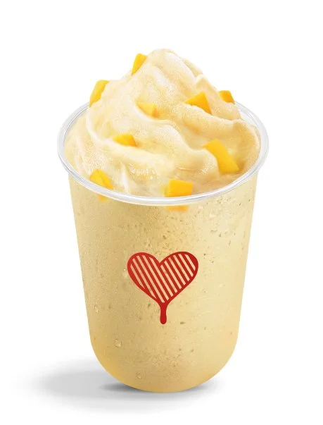 Teh yuzu dan raspberry hibiscus dengan potongan buah mangga