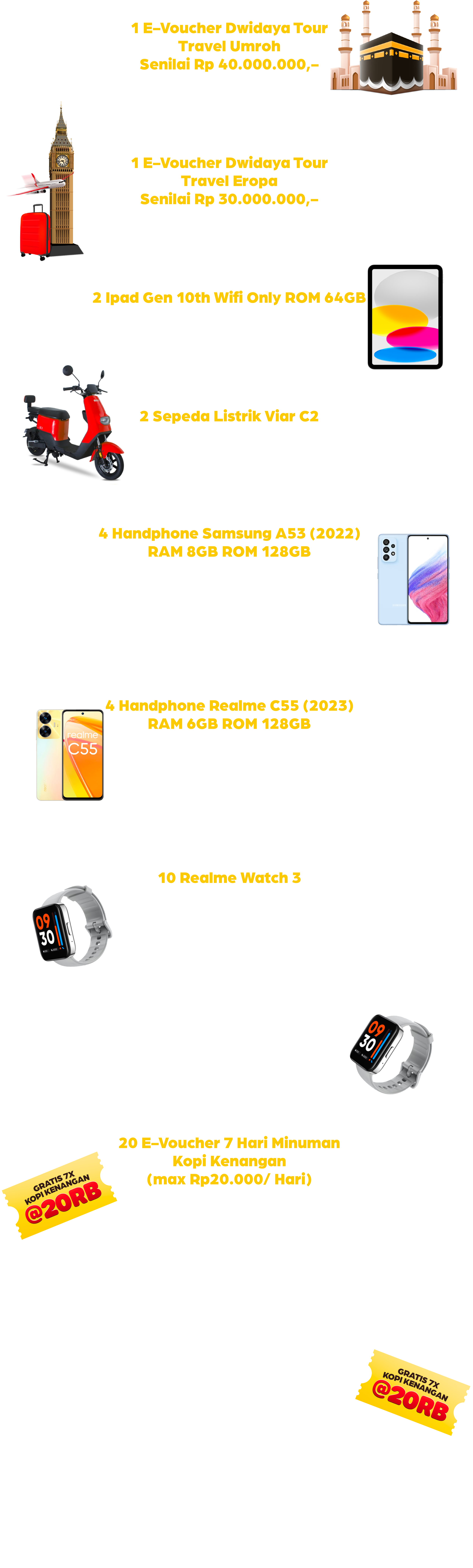 - Hadiah tidak dapat dipindahtangankan dan tidak untuk diperjual-belikan dan/atau tidak dapat ditukarkan dengan uang tunai maupun dengan apapun, baik secara keseluruhan atau sebagian.
