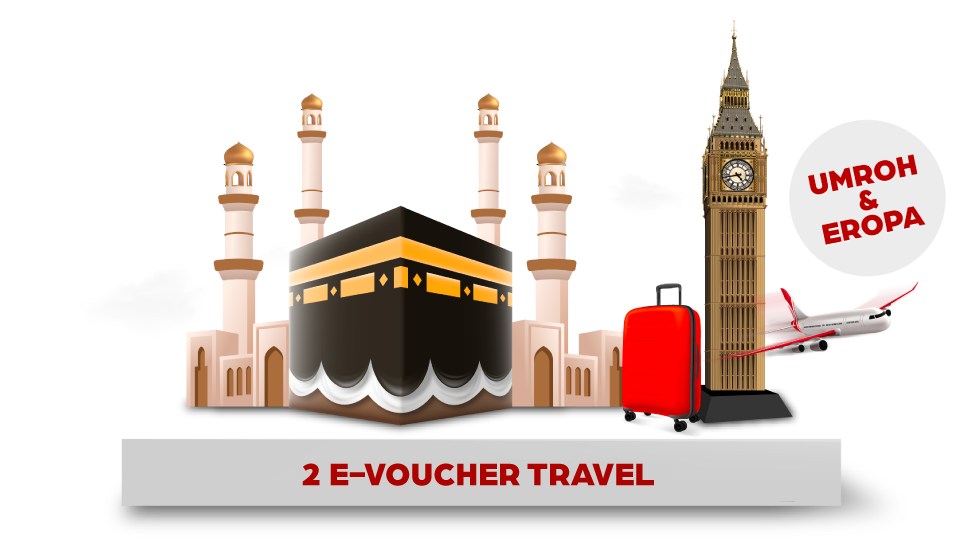 - Untuk e-voucher Umroh, apabila di suatu saat, pemenang bukan beragama muslim, pemenang masih dapat menggunakan voucher tersebut untuk melakukan pembelian paket perjalanan lain.